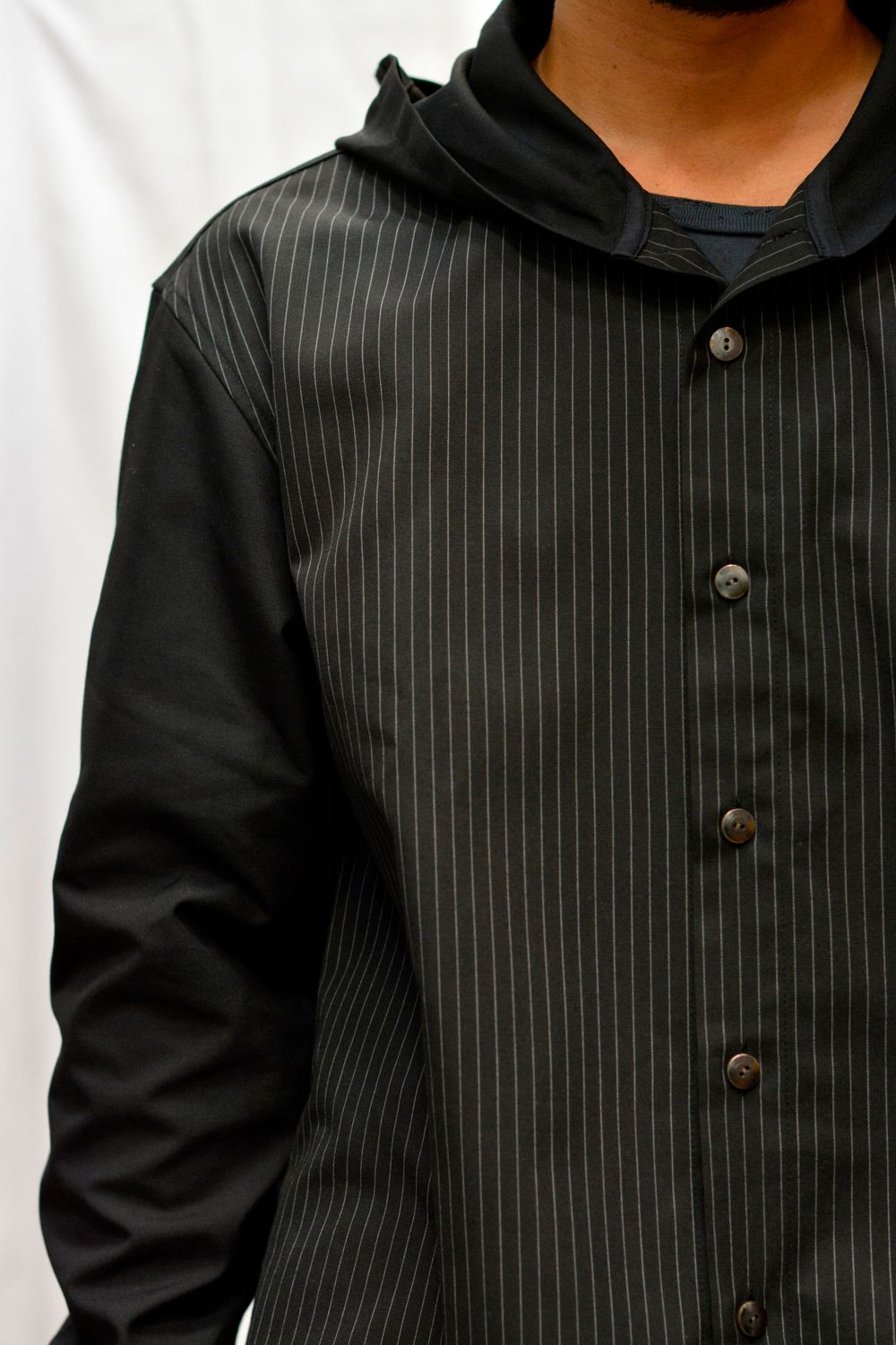 ISAMUKATAYAMA BACKLASH カジュアルにも落とし込める優れたアイテム 【ストライプフーディーシャツ】