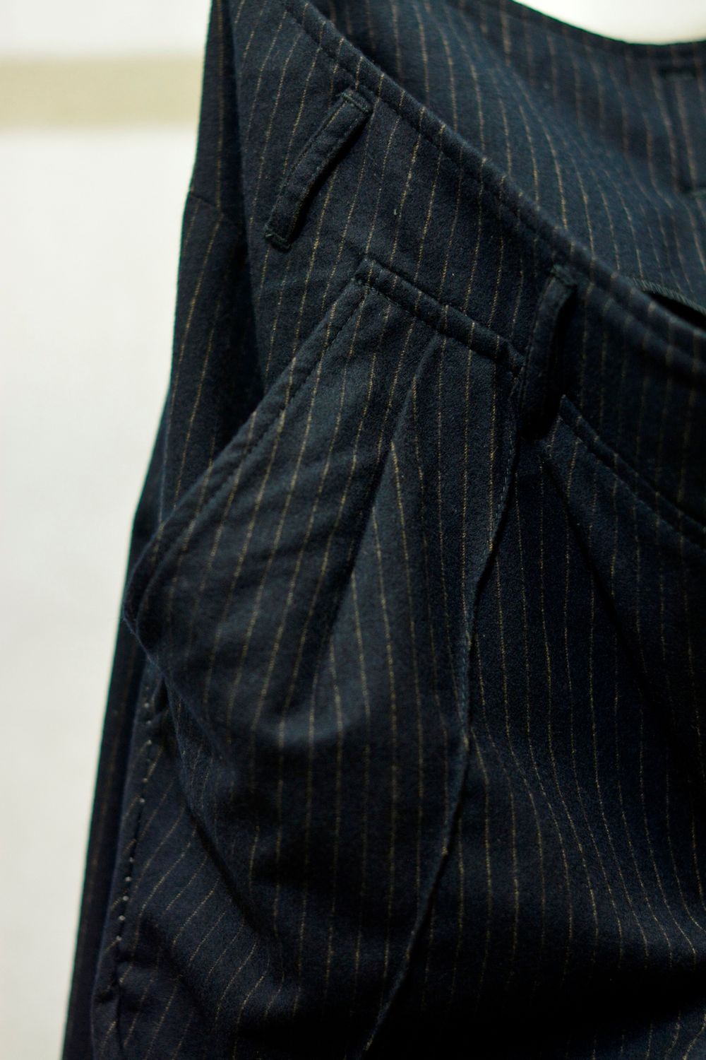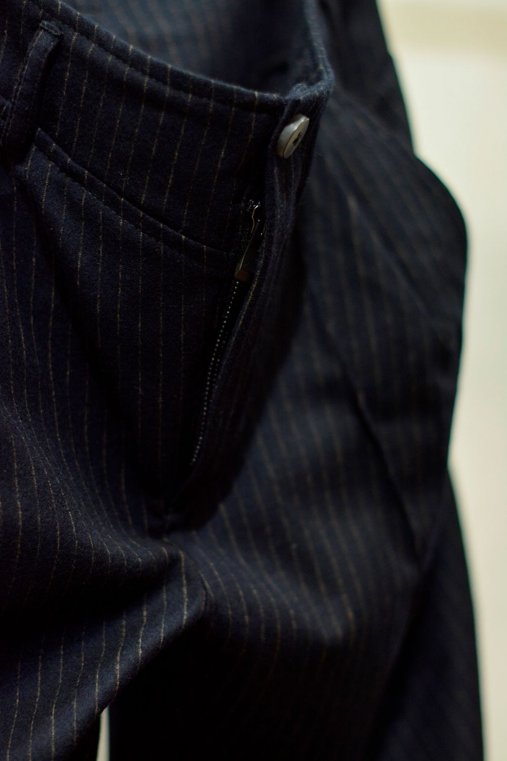 ベスト同様の『バンカーズストライプ』のテーパードパンツ。