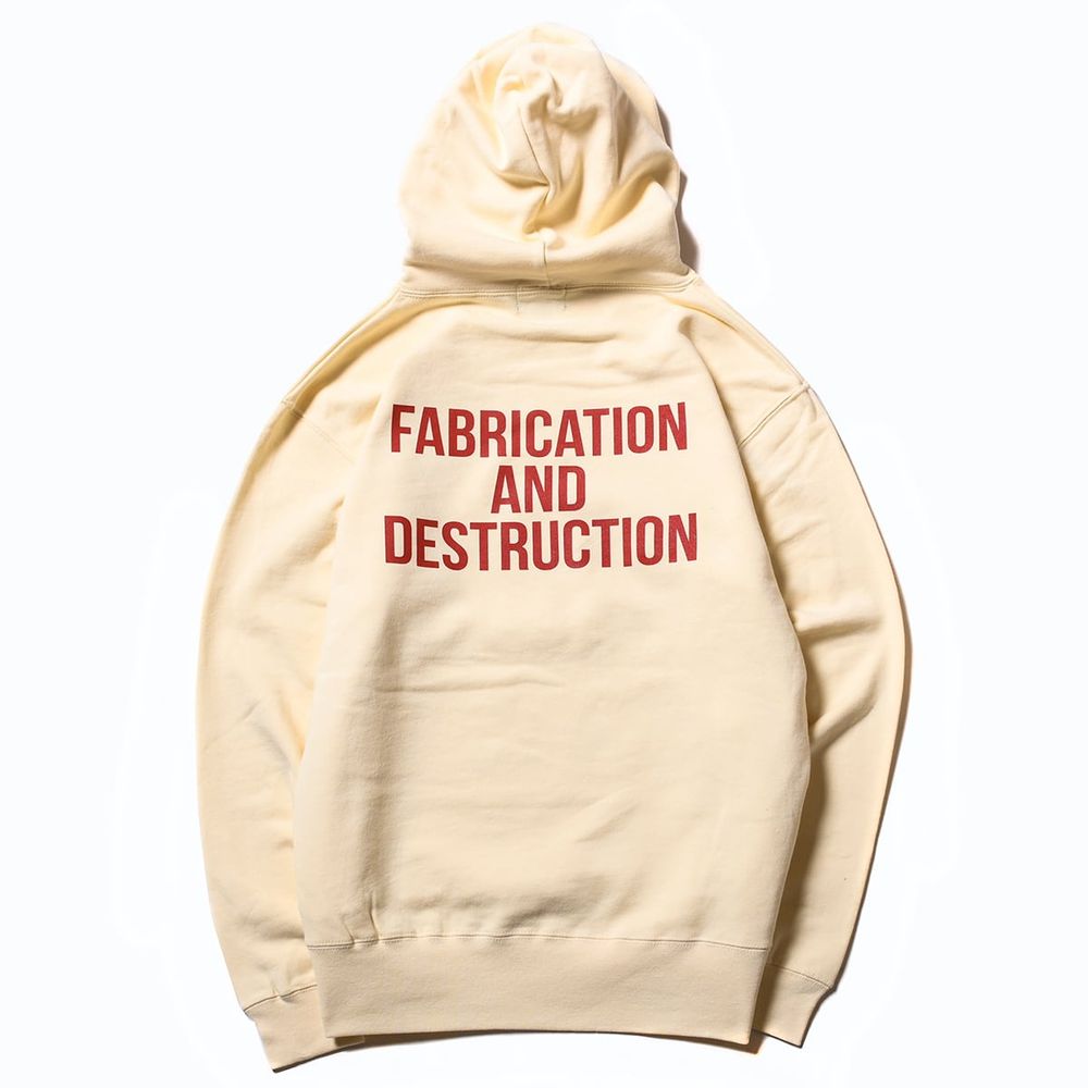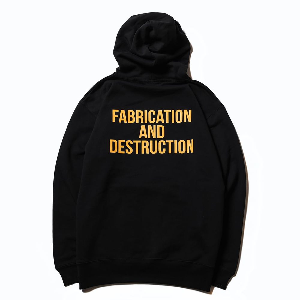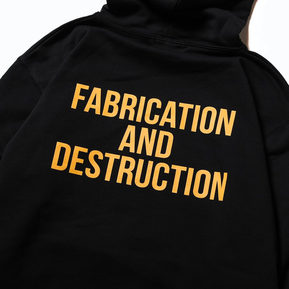 バックには”FABRICATION AND DESTRUCTION”のプリントが入る。