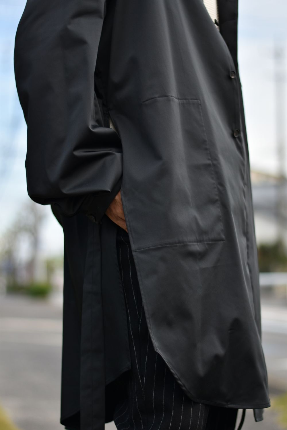 " イタリアはリモンタ社のナイロン⾵ヘビータフタを採⽤した新型のデタッチャブルカラーロングシャツコート "