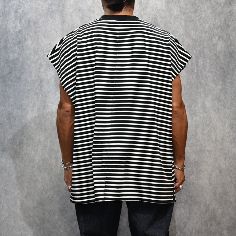 Big Nosleeve Border T-SH (WHITE) / ビック ノースリーブ ボーダーTシャツ (ホワイト) 2505-4007