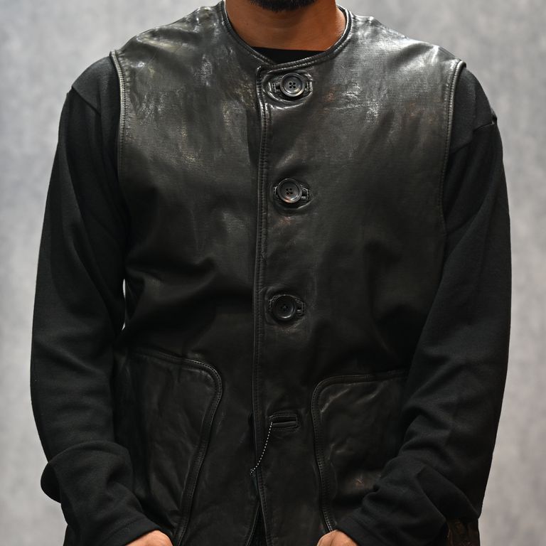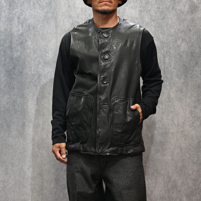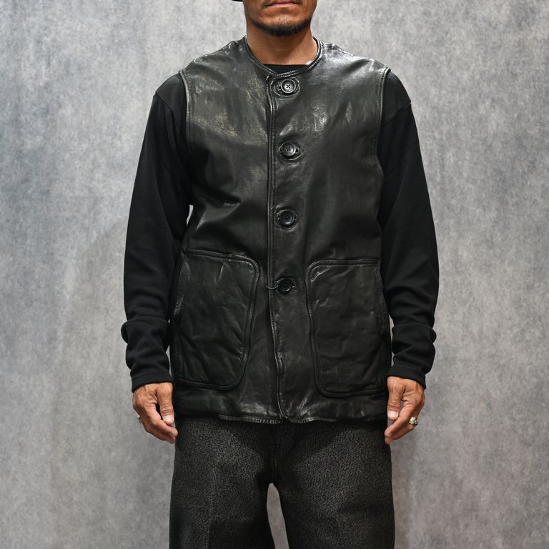 JAPANステア ミモザ鞣し製品染め 4Bベスト (BLACK)|2175-01