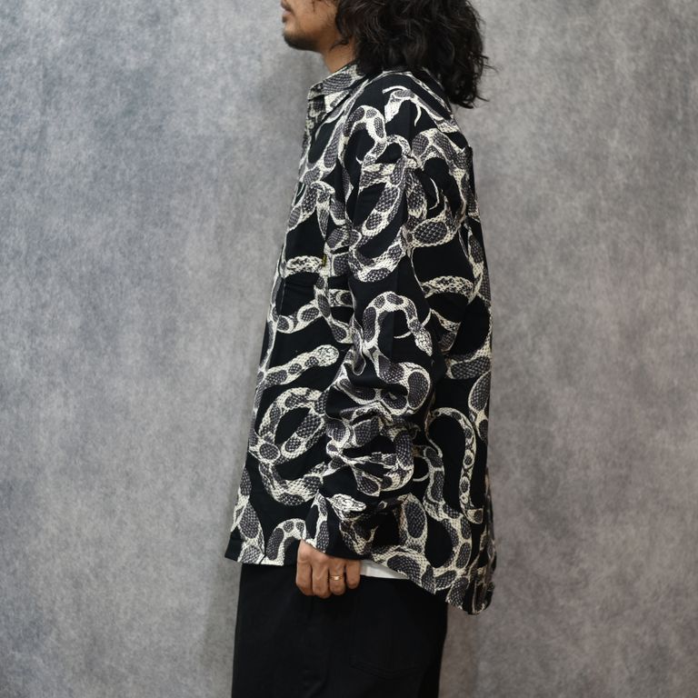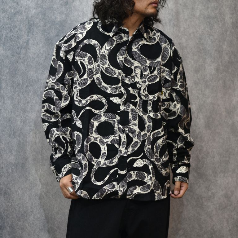 PRINT NEL L/S SH <SNAKE PATTERN> (BLACK)|蛇柄 フランネル 長袖シャツ|CL-25AW003SNK