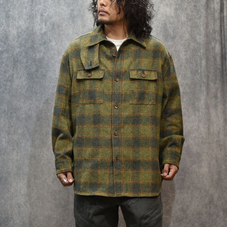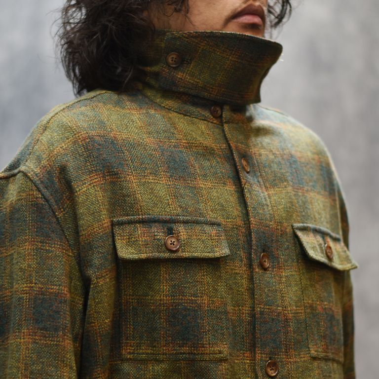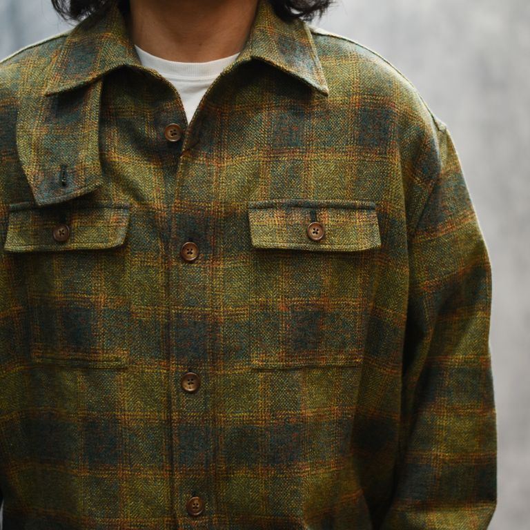 MOTTLE YARN HERRINGBONE OMBRE CPO (GREEN)|オンブレチェック シーピーオーシャツ|375202