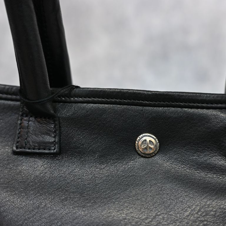 PC RIDERS LEATHER TOTE BAG S W / LOVE & PEACE SILVER (BLACK)|レザートート バッグ (ブラック) PC-017-3696-10