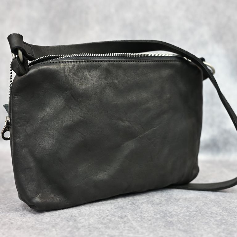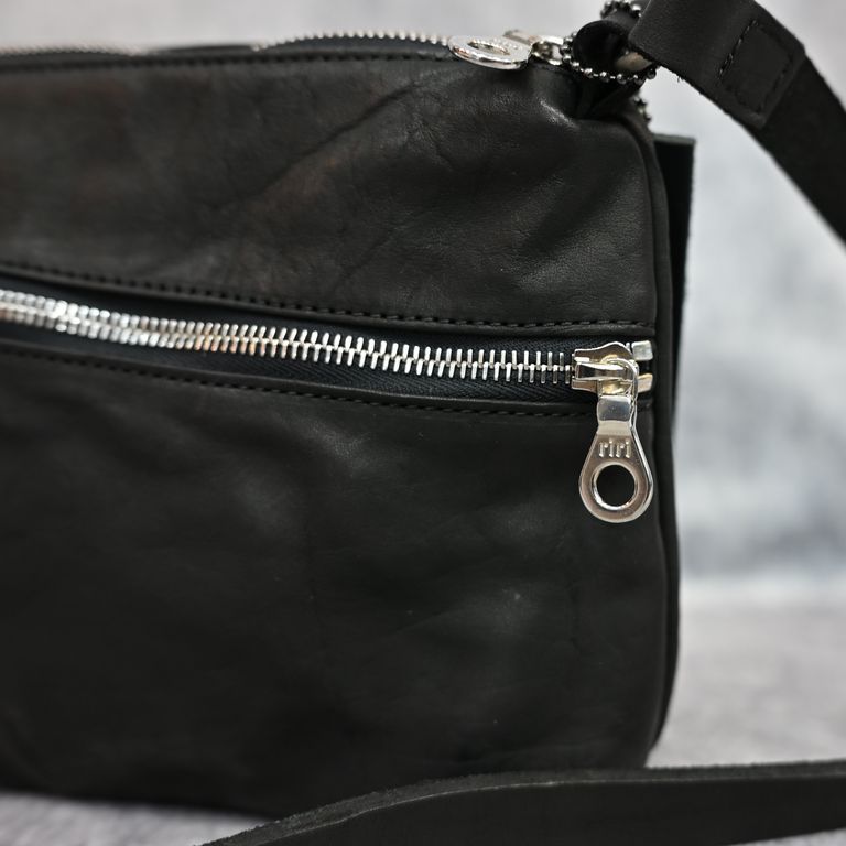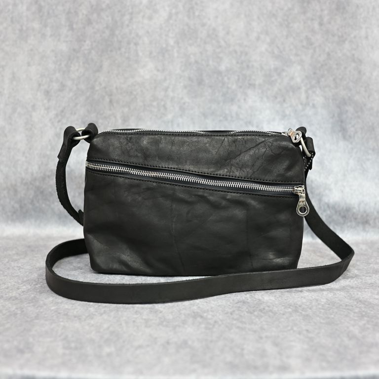 ジャパンダブルショルダー フルタンニン製品染め ショルダーバッグ (BLACK) / 92-29