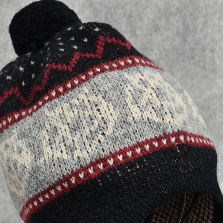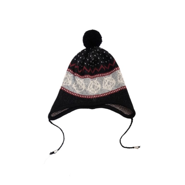 WOOL KNIT FLAP POMPOM BEANIE (BK)|ポンポンニット帽|PD25AAC09