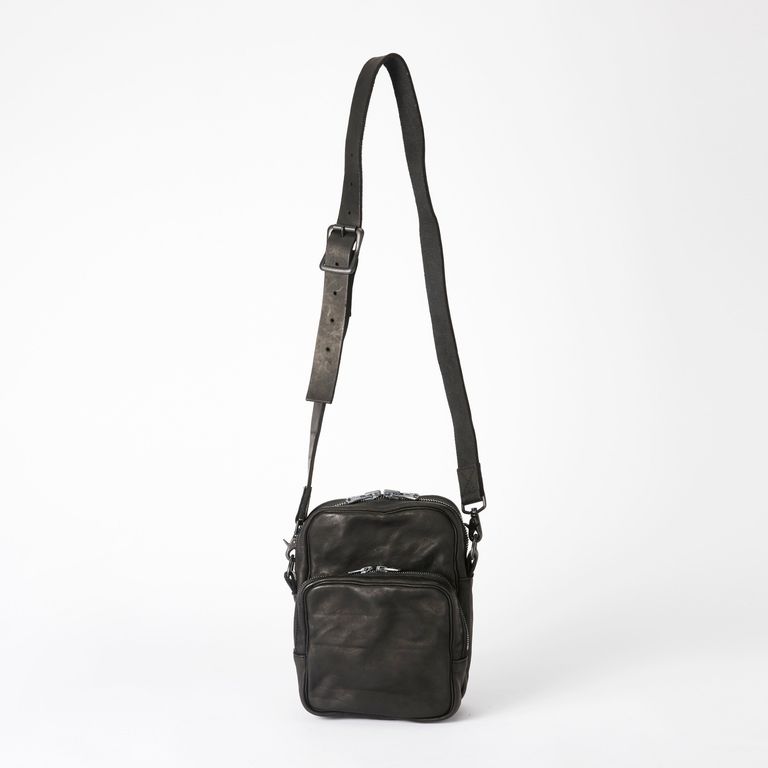ダブルショルダー製品染め W ZIP ショルダーバッグ (BLACK)|92-32