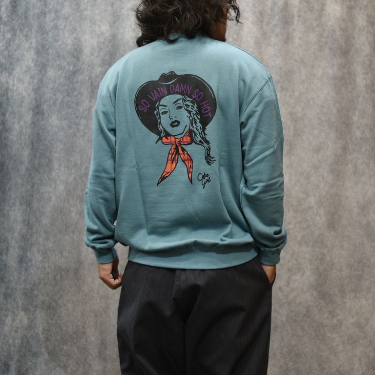 SYNDICATE RETRO WESTERN GIRL CREW NECK SW (TURQUOISE BLUE)|クルーネック スウェット トレーナー|CL-25AW029