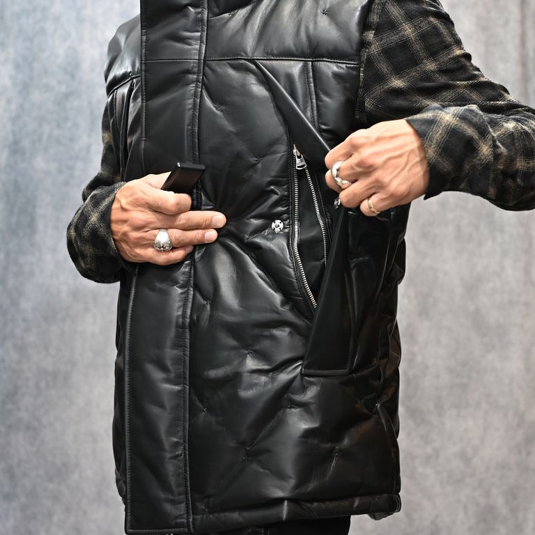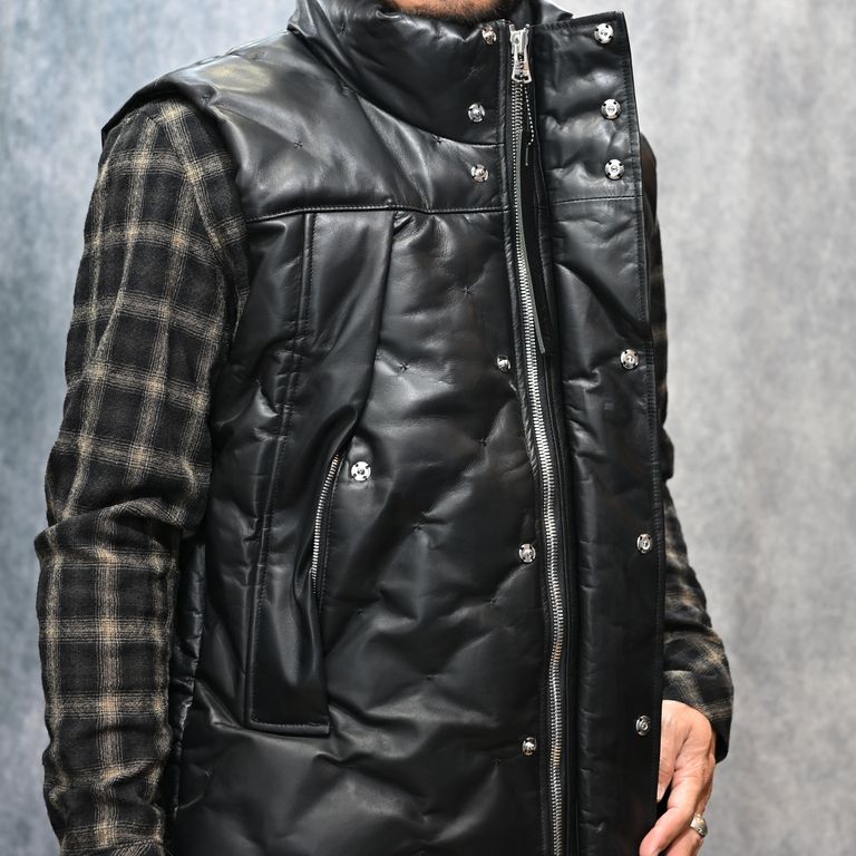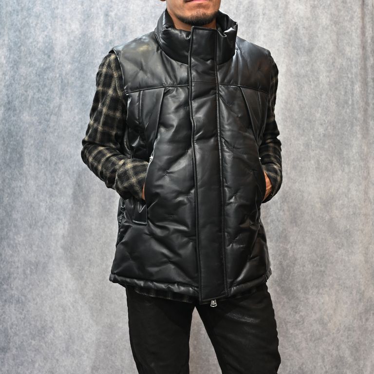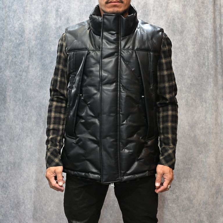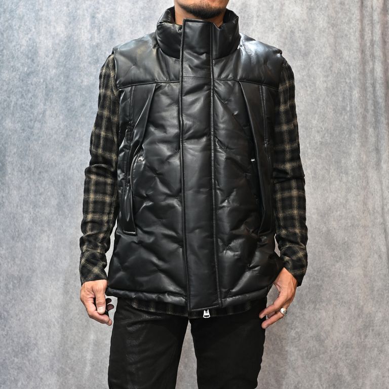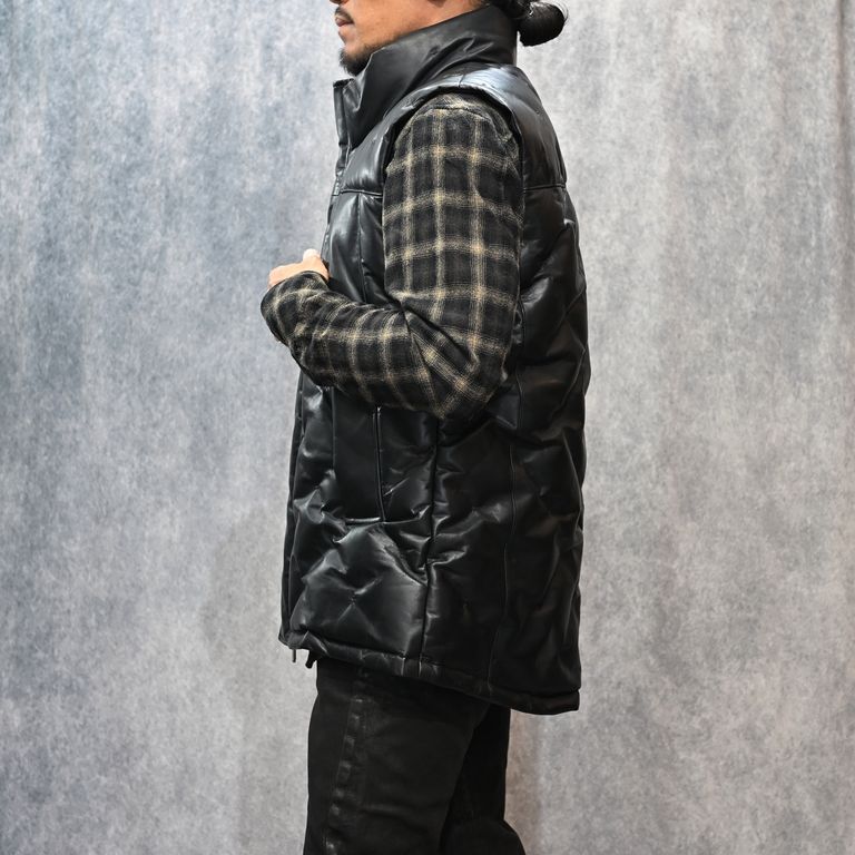 ファニチャーレザー + ポーランドホワイトグース ダウンベスト (BLACK / ブラック) 2031-13