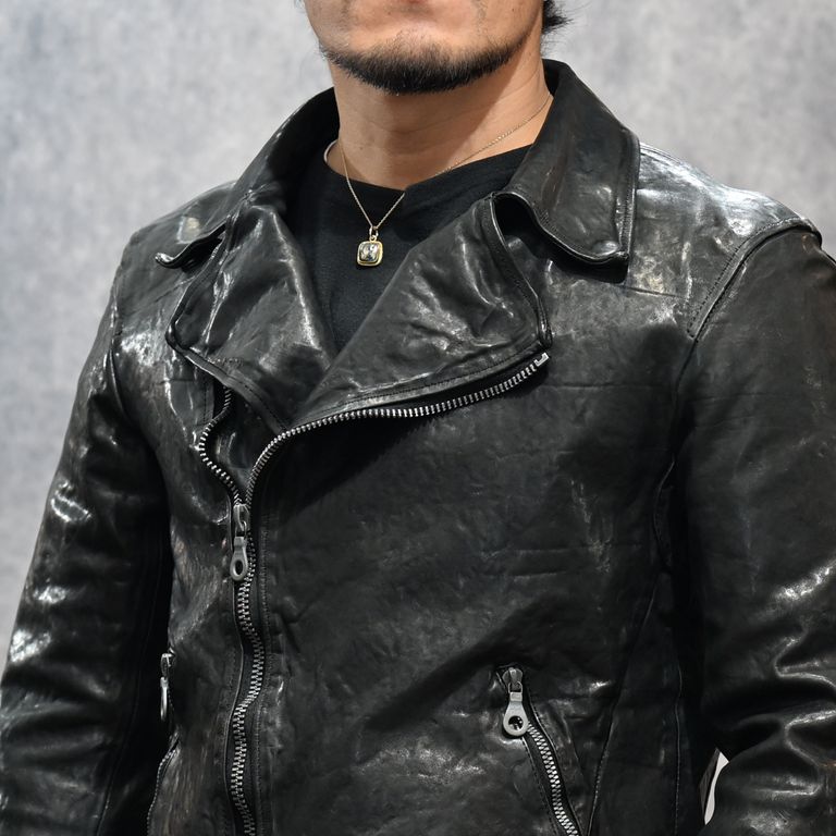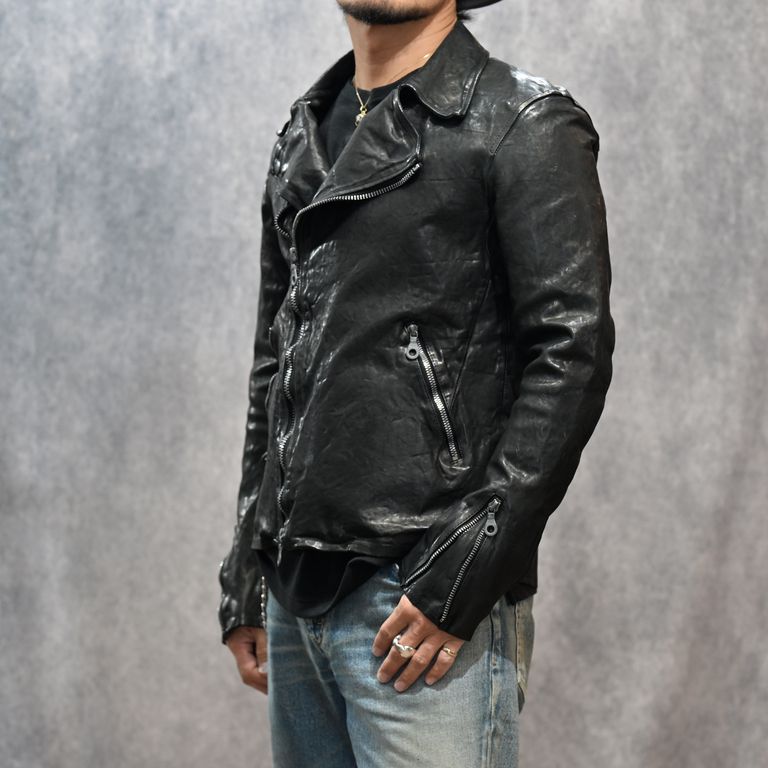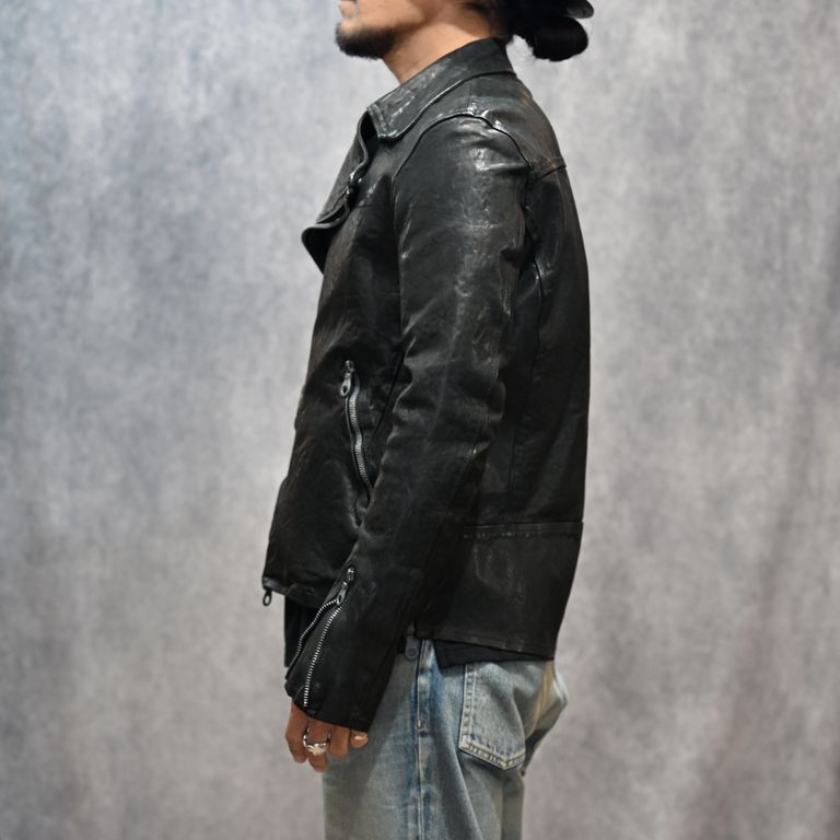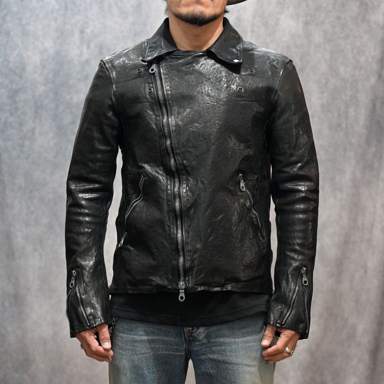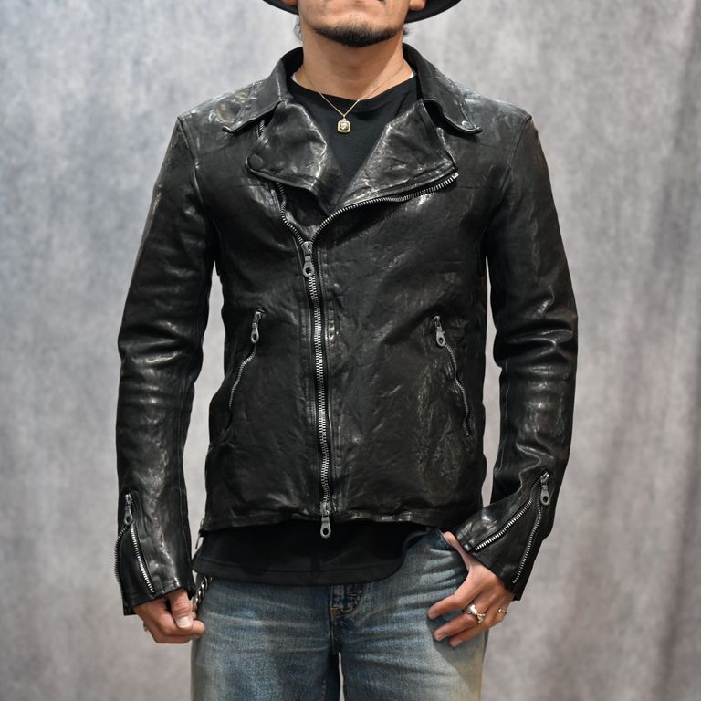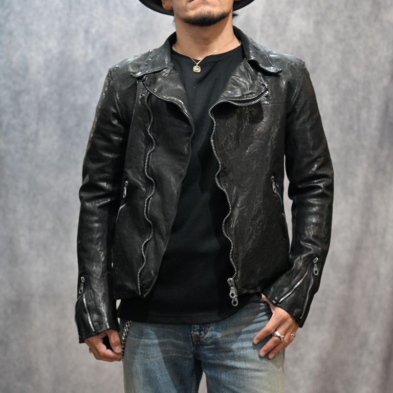 イタリーショルダー製品染め ダブルライダース (BLACK)|1254-02