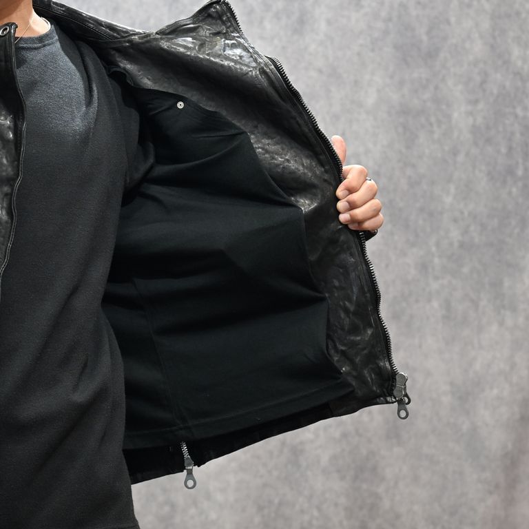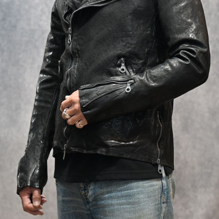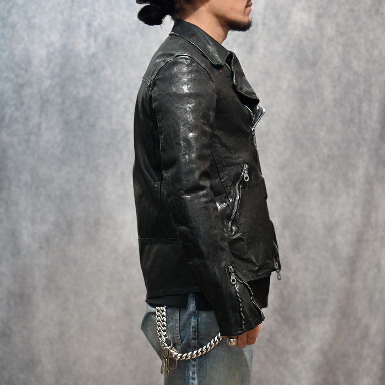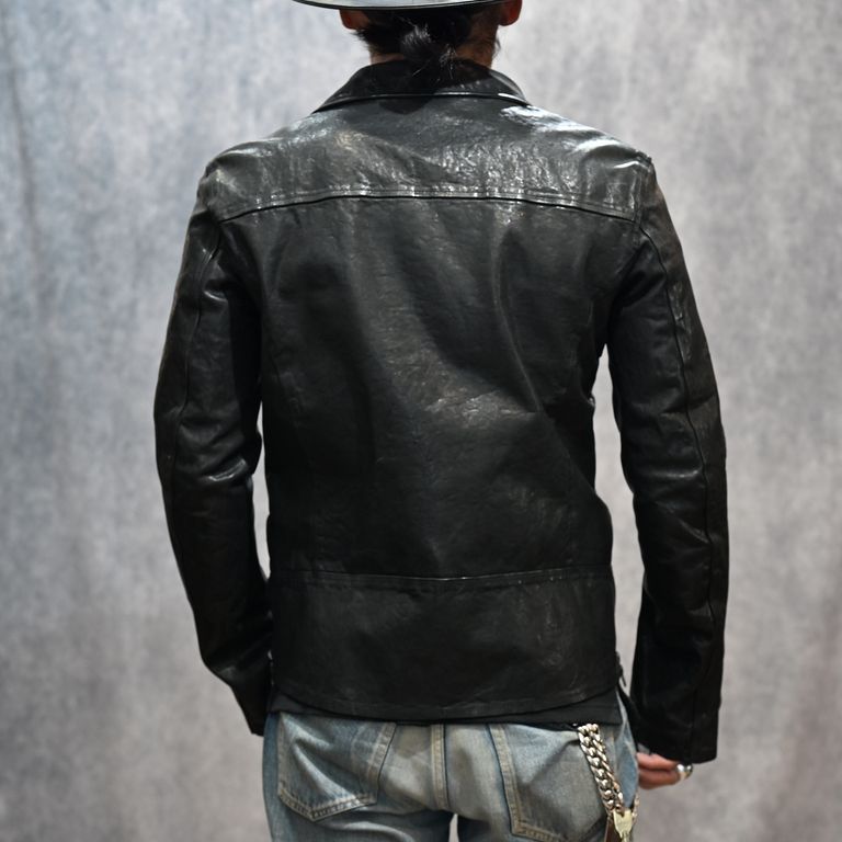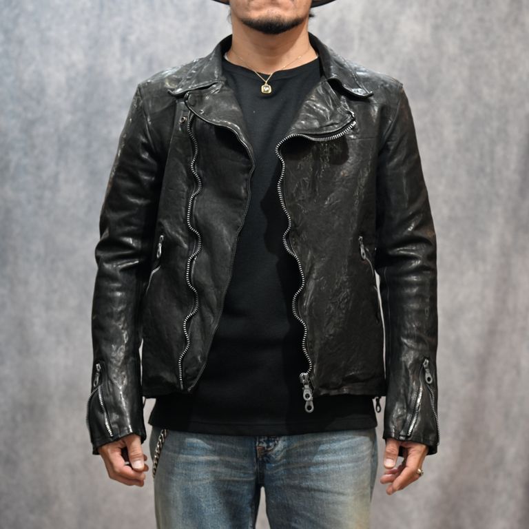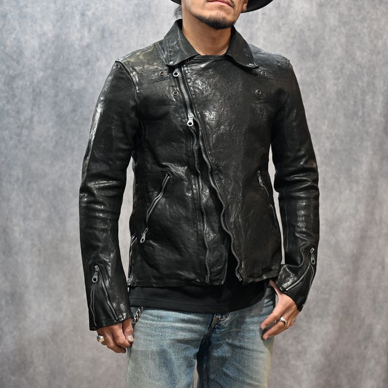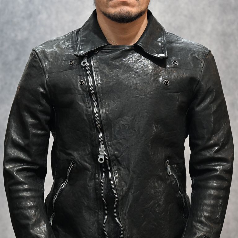イタリーショルダー製品染め ダブルライダース (BLACK)|1254-02