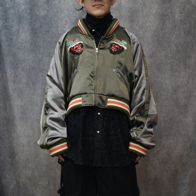 CROPPED YAMA KING EMBROIDERED SOUVENIR JKT (OLIVE)|閻魔大王 スーベニアジャケット・スカジャン ショート丈・短丈|PD25AW02