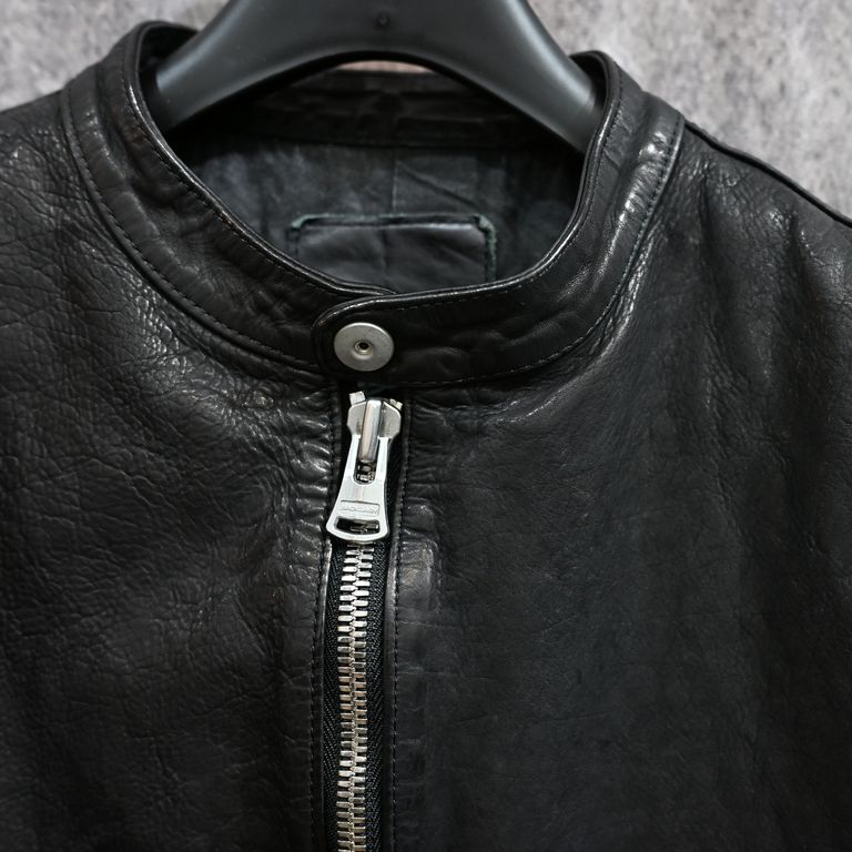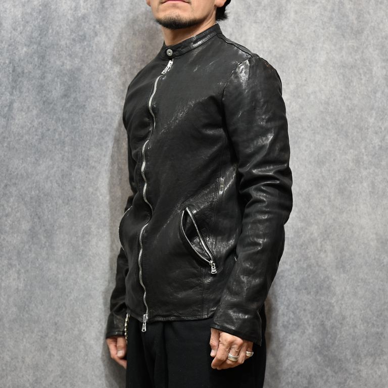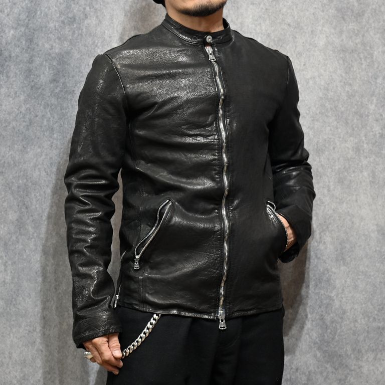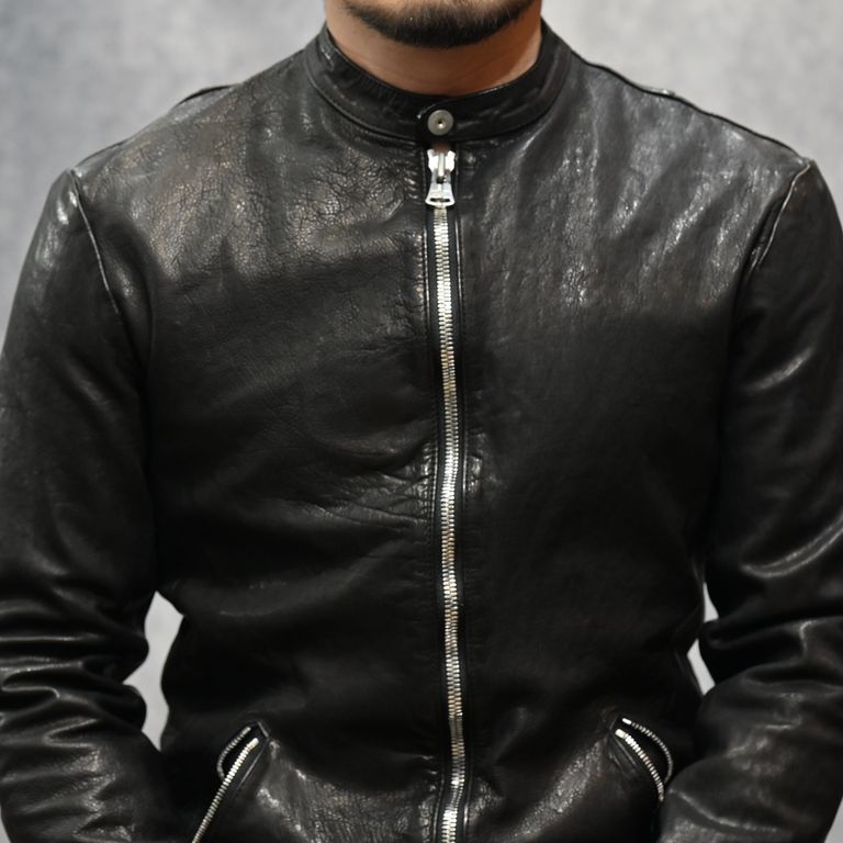 ジャパンカーフ タンニン鞣し 製品洗い加工 シングルライダース (BLACK / ブラック) 1927-05