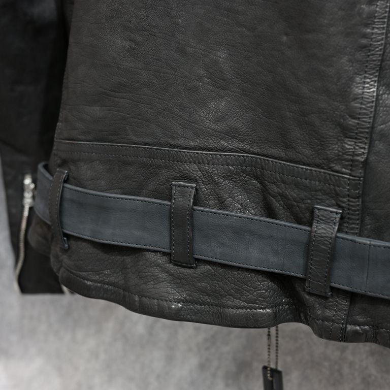 ジャパンカーフ タンニン鞣し 製品洗い ダブルライダース (BLACK) 1927-07