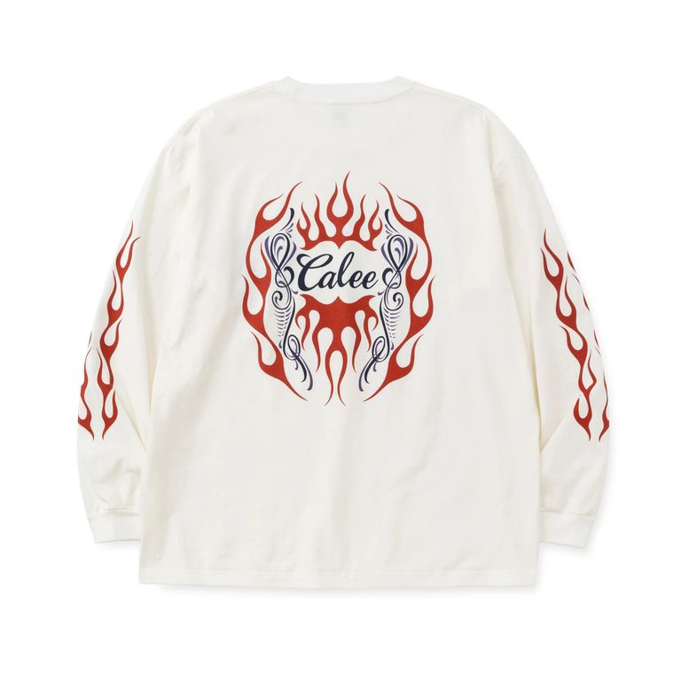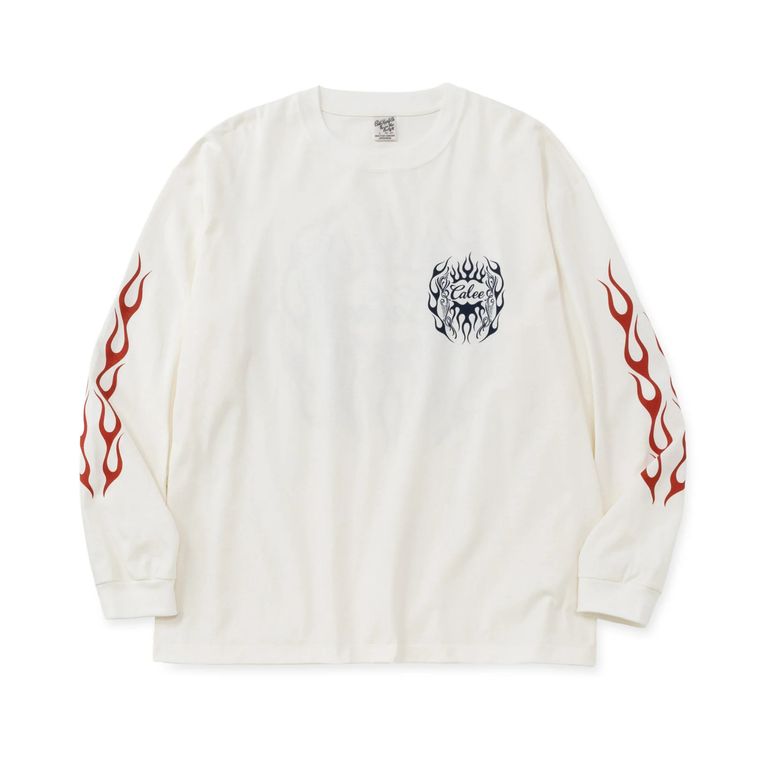 VINTAGE TYPE FLAME LOGO PINSTRIPING L/ S TEE <NATURALLY PAINT DESIGN> (WHITE)|長袖プリントTシャツ|CL-26SS001NT